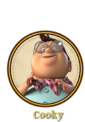 Cooky ist, wie der Name schon sagt, der Koch- und Backzwerg. Vor allen Dingen ist es aber auch er, der die Regeln hochhält. Das macht ihn unter den Zwergen zur moralischen Instanz. Gleichzeitig ist er aber auch, nicht nur wegen seiner Kochschürze, die Ersatzmutter der Zwerge, die die anderen bekocht, sie tröstet und ihnen Mut macht.
